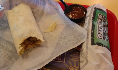 Went to Del Taco with Mantis today. I had a Del Chicken Burrito and a 1/2 lb. bean and cheese burrito. I have to be honest, they were not at their best today. I felt like I got a lot of tortilla and not enough ingredients today. Even Del Taco can be sub par every now and then. Not awful, just not up to standards at this location, on this occasion. 3 Burps.